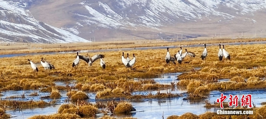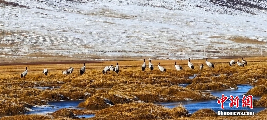 青海隆寶國家級自然保護區(qū)記錄116只黑頸鶴集群