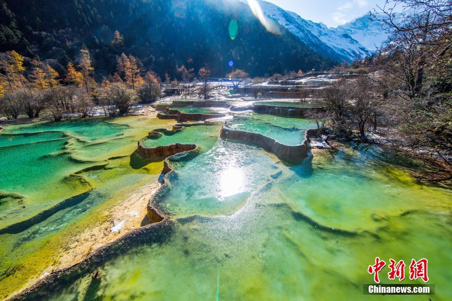 11月18日,航拍四川省阿壩藏族羌族自治州松潘縣黃龍景區(qū)風光。(無人機照片) 中新社記者 安源 攝