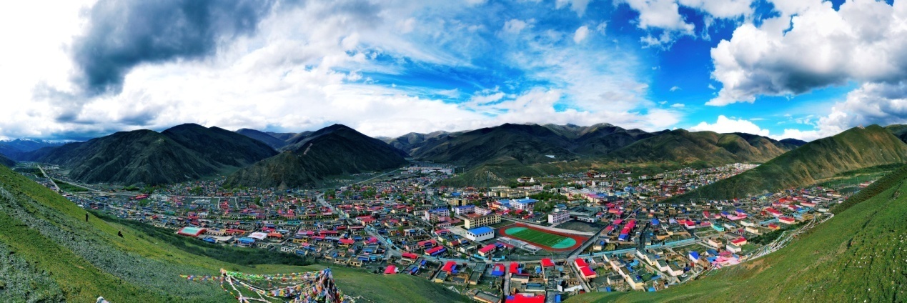 圖為遠(yuǎn)眺青海省玉樹藏族自治州稱多縣
