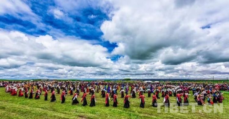 圖為青海省海南藏族自治州群眾在美麗的草原上載歌載舞