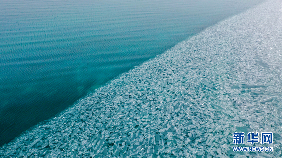 封凍的湖面如同破碎的“玉帶”,形成獨(dú)特的景觀。新華網(wǎng) 宋忠勇 攝