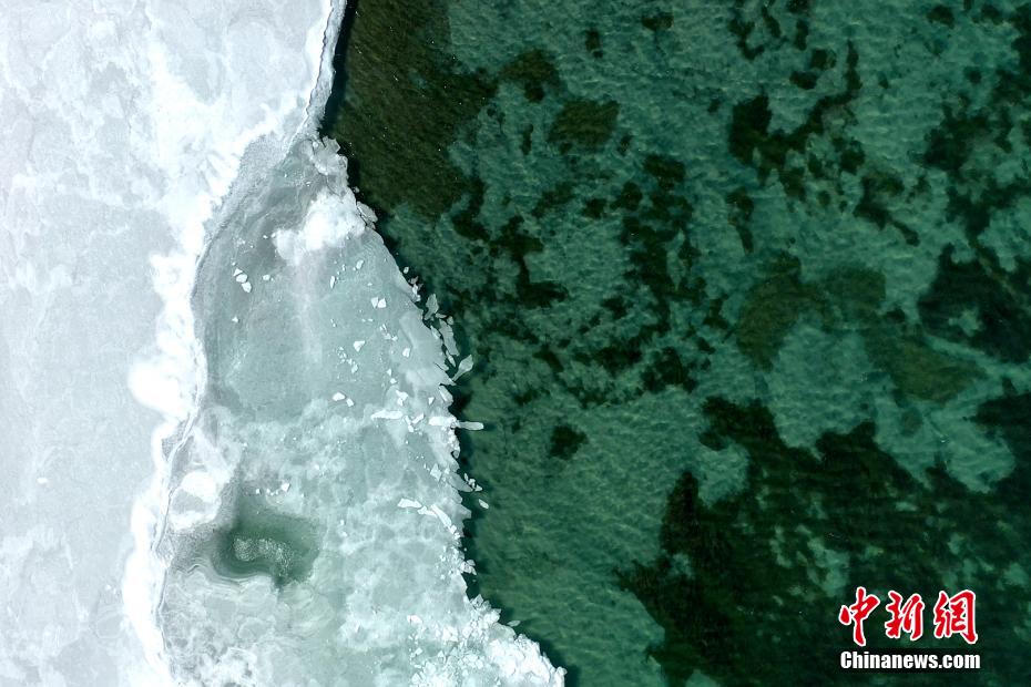 近日,素有“高原藍(lán)寶石”之稱的青海湖開始進(jìn)入冰封期。青海湖水體周邊的零星結(jié)冰,青海湖西部邊緣、北部湖岸區(qū)、鳥島、青海湖斷崖等地出現(xiàn)成片結(jié)冰區(qū)。航拍畫面中可以看到湖心范圍尚有大面積未結(jié)冰區(qū)域。青海湖是中國(guó)最大的內(nèi)陸咸水湖。冬日里的青海湖,寧?kù)o而內(nèi)斂。千里冰封,宛如童話世界。封凍的湖面如同破碎的“玉帶”,形成獨(dú)特的景觀。張世偉 攝