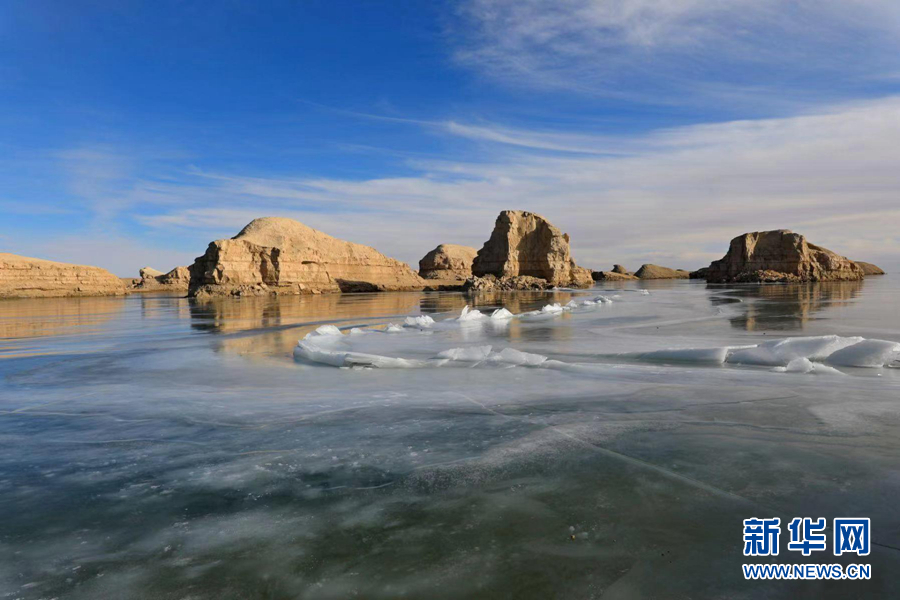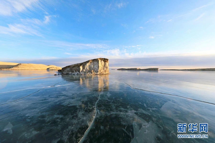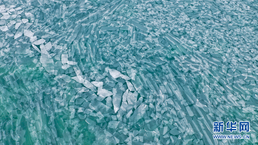 封凍的湖面如同破碎的“玉帶”,形成獨特的景觀。新華網(wǎng)發(fā)(宋忠勇 攝)