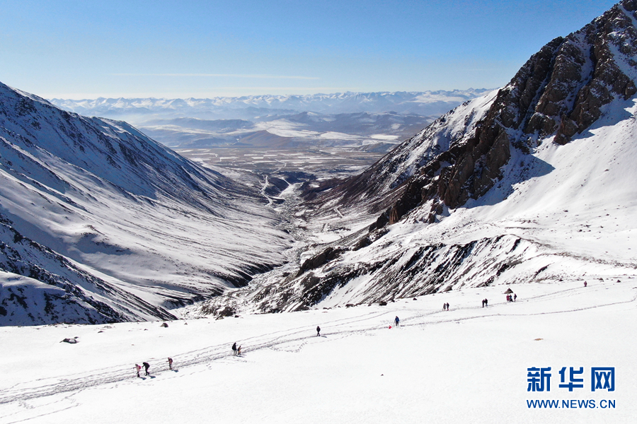 2022年1月1日,登山愛好者攀登崗什卡雪峰(無人機照片)。新華社記者 張龍攝
