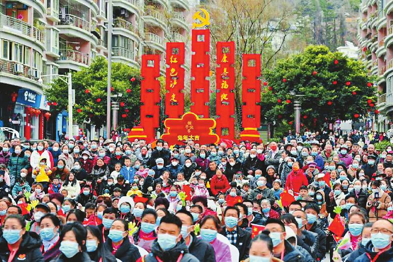 2月7日,四川省甘孜州瀘定縣瀘定橋廣場上,人們載歌載舞,歡聲笑語,熱鬧非凡;而另一側(cè)的廣場上,同樣排著長隊(duì),全省21家省直部門布展送科技下鄉(xiāng)。[詳細(xì)] -