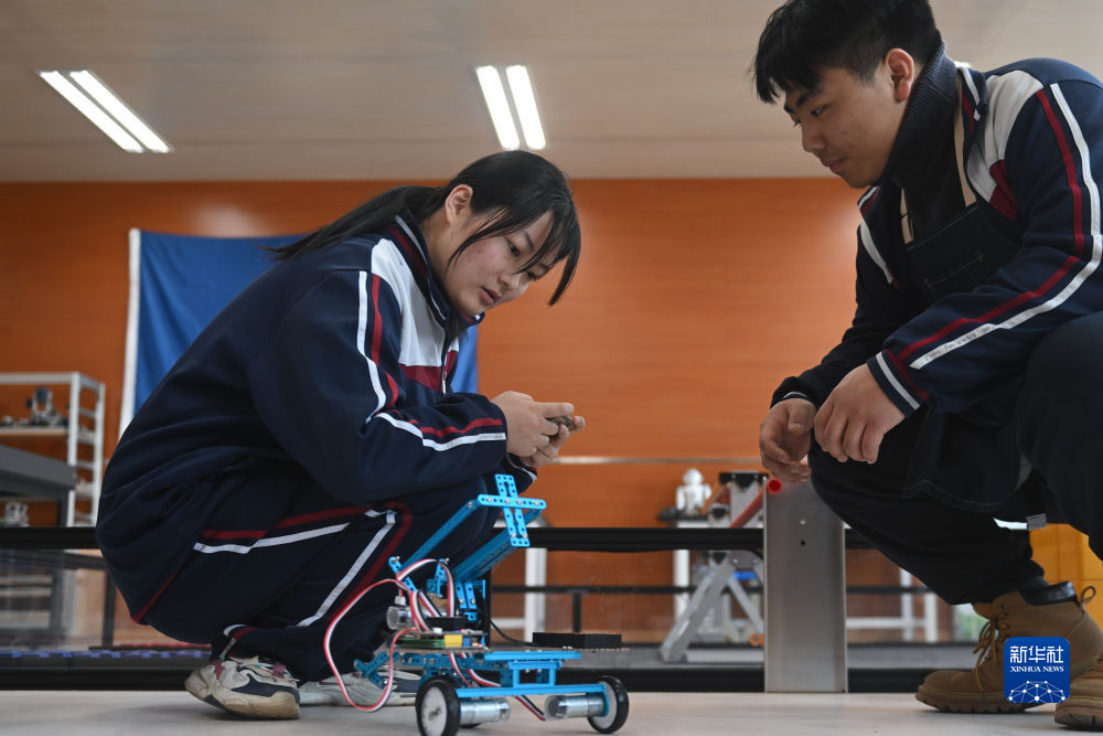 2月23日,西寧果洛中學學生在機器人教室內(nèi)操作自己組裝的機器人。新華社記者 張龍 攝