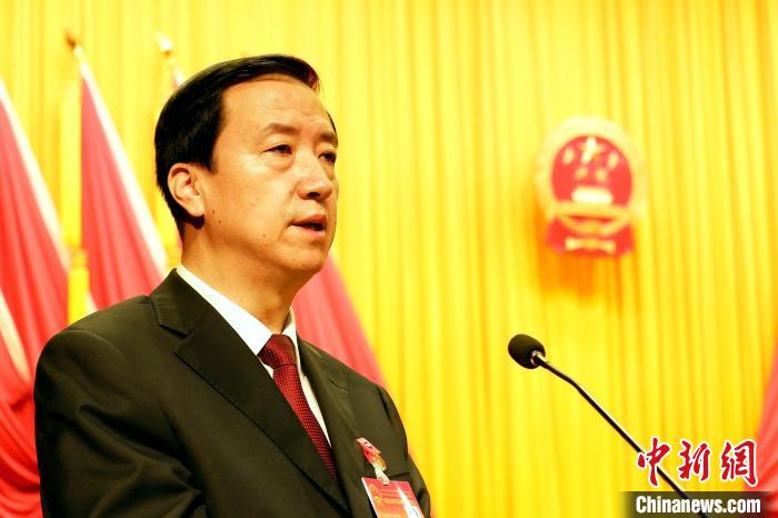 圖為海北州代州長(zhǎng)張勝源作工作報(bào)告。李雋 攝