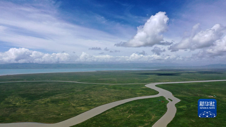 這是青海湖布哈河濕地一景(2020年7月10日攝,無(wú)人機(jī)照片)。新華社記者 張宏祥 攝
