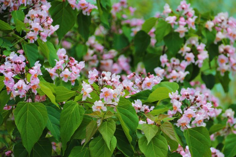 楸英獨嫵媚,淡紫相參差。春季是春花爛漫的時節(jié),一花落盡又有一花開,在迪慶香格里拉經(jīng)濟(jì)開發(fā)區(qū),楸樹正迎來繁花期,一樹樹楸花簇?fù)砭`放,隨風(fēng)搖曳,美不勝收。