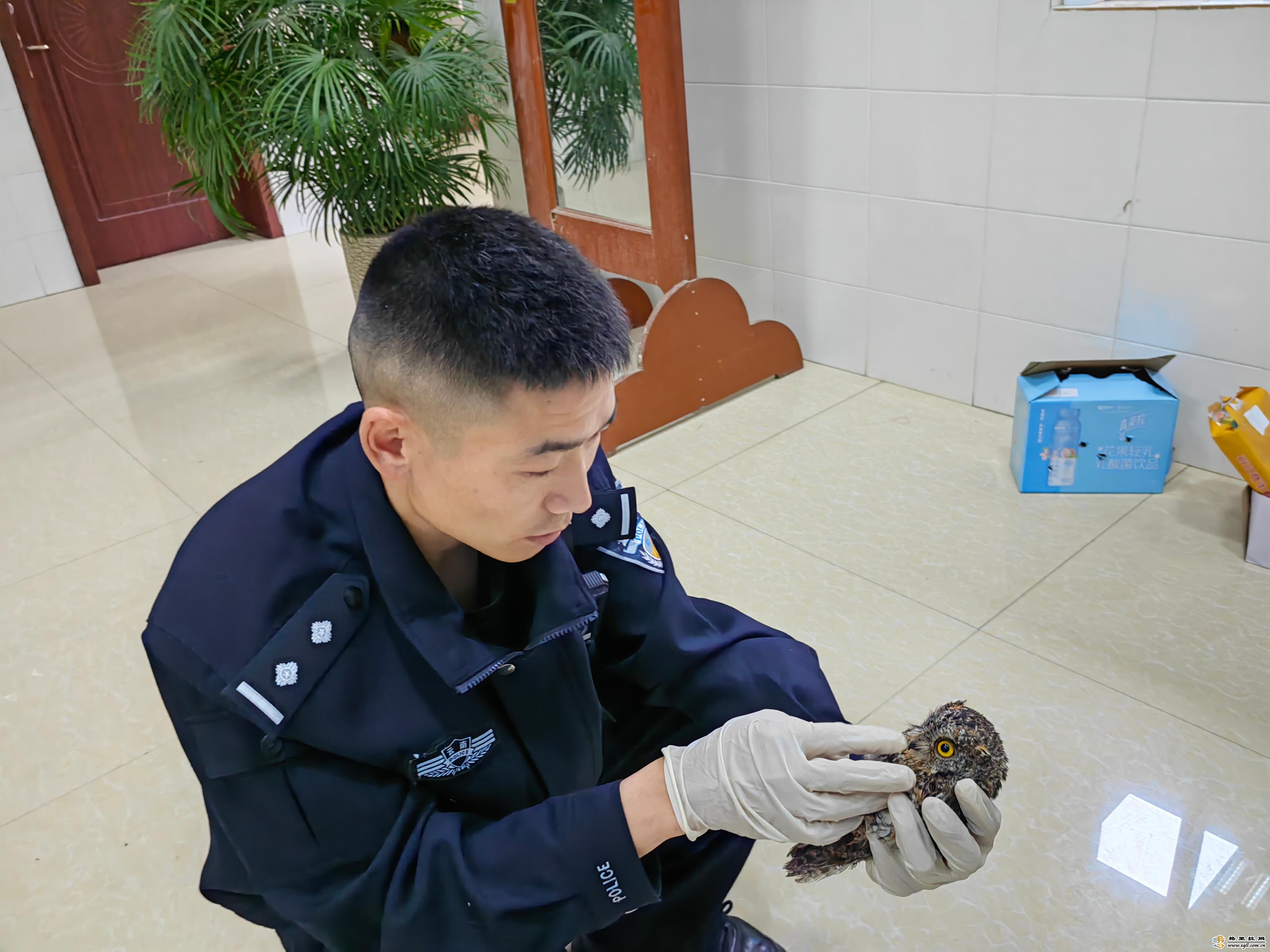 近日,維西縣公安局森警大隊(duì)民警接到群眾報(bào)警稱(chēng):“在興維大道錦盛小區(qū)發(fā)現(xiàn)一只受傷的貓頭鷹,請(qǐng)求森警大隊(duì)民警前往救助”。民警趕到現(xiàn)場(chǎng)時(shí),熱心群眾已經(jīng)將貓頭鷹放在一個(gè)紙盒里,該貓頭鷹全長(zhǎng)約20厘米,身上部分羽毛是濕的。