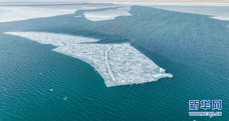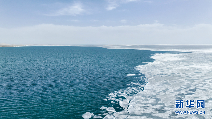 這是4月8日拍攝的青海湖開湖景觀(無人機(jī)照片)。新華網(wǎng) 宋忠勇 攝