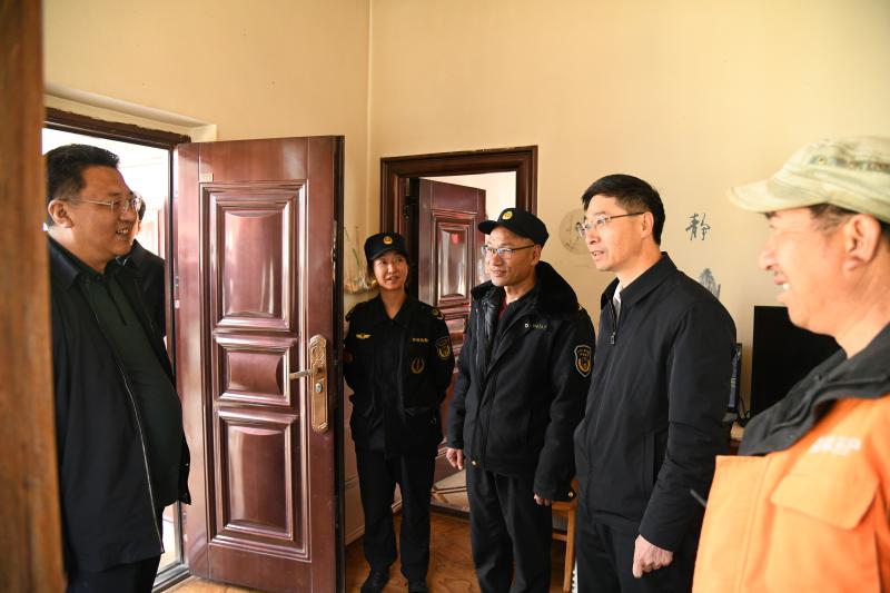 在德吉林寺檢查站,羅朝峰與執(zhí)勤人員親切交談,詳細了解每天進山人數(shù)、造冊登記、流動人員管理等情況。