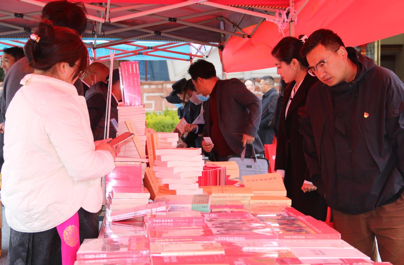 近日,記者在重點(diǎn)出版物展示展銷暨惠民書市活動(dòng)現(xiàn)場(chǎng)看到,迪慶州各大書店在香格里拉大劇院廣場(chǎng)中央擺放著大量習(xí)近平新時(shí)代中國(guó)特色社會(huì)主義思想讀物,吸引著市民前來翻閱購買。