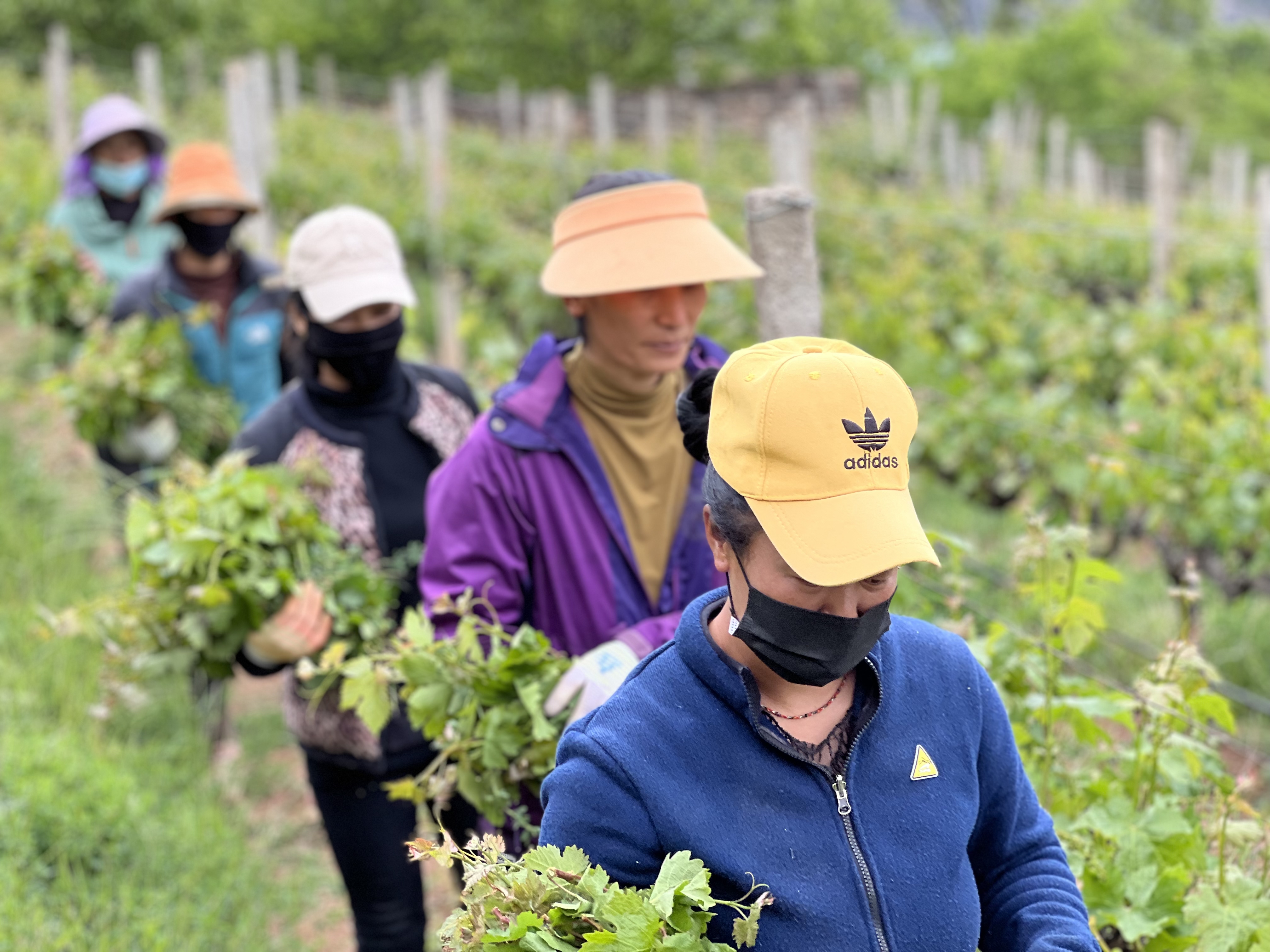 五月,瀾滄江河谷兩岸葡萄架上片片綠蔭生機盎然。眼下,正值葡萄養(yǎng)護時期,農(nóng)戶們正在地里忙著除草、施肥,一派繁忙的景象。
