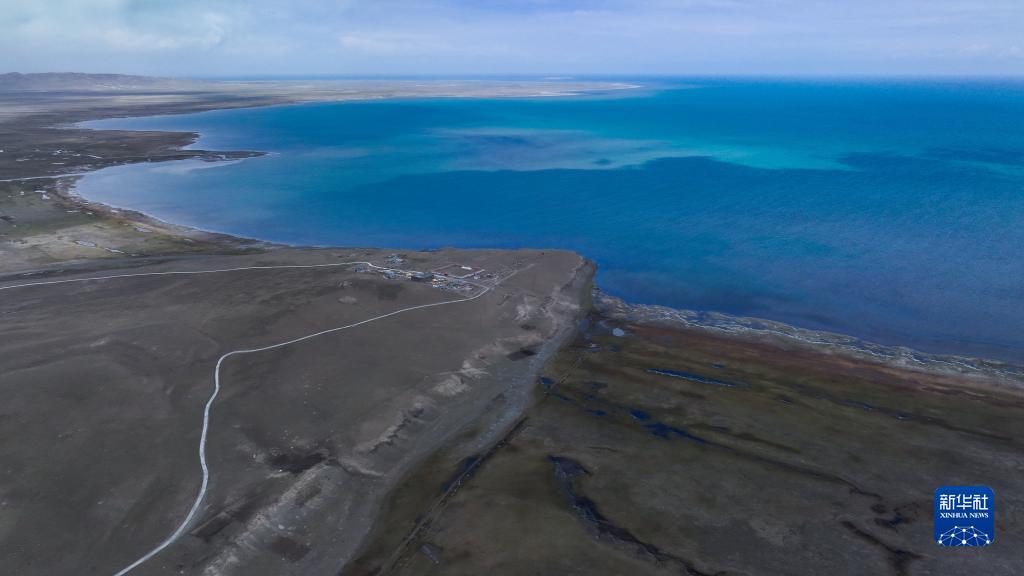 這是5月17日在青海省海南藏族自治州共和縣石乃亥鄉(xiāng)拍攝的青海湖一角(無人機(jī)照片)。新華社記者 解統(tǒng)強(qiáng) 攝