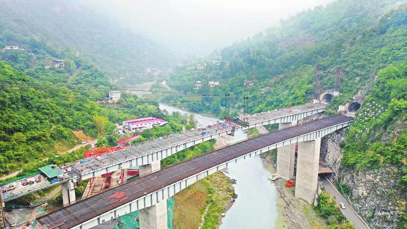 桑園子大橋合龍施工現(xiàn)場。中國五冶集團供圖