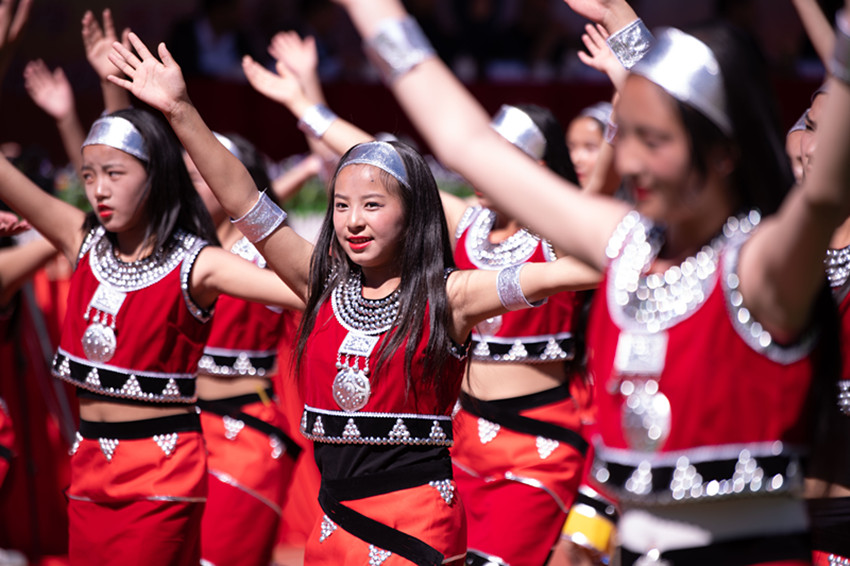 5月28日,雅江縣第五屆中小學(xué)生校園文化藝術(shù)節(jié)展演活動(dòng)在呷拉鎮(zhèn)片區(qū)寄宿制小學(xué)開演。表演分童心向黨跟黨走、陽(yáng)光體育伴成長(zhǎng)、民族團(tuán)結(jié)一家親三個(gè)篇章,共有18個(gè)代表隊(duì)、2000余人參演。師生們隨著動(dòng)感的節(jié)拍歡快起舞,用精彩的表演生動(dòng)展現(xiàn)了昂揚(yáng)的革命精神、繽紛的青春夢(mèng)想,贏得一波又一波熱烈的掌聲。圖為展演活動(dòng)現(xiàn)場(chǎng)。