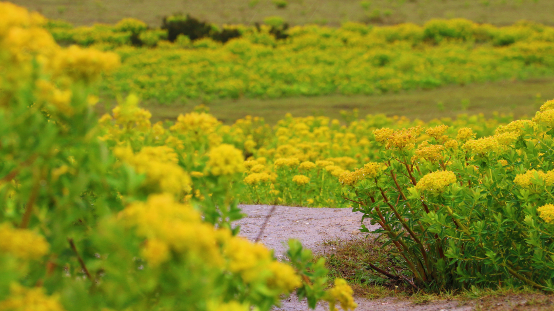 黃色的狼毒花在雨中越發(fā)精神