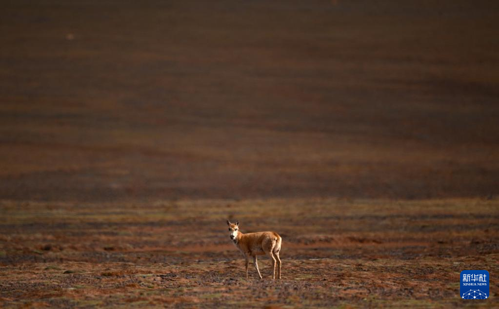 一只藏羚羊在可可西里卓乃湖區(qū)域活動(dòng)(6月17日攝)。新華社記者 張宏祥 攝