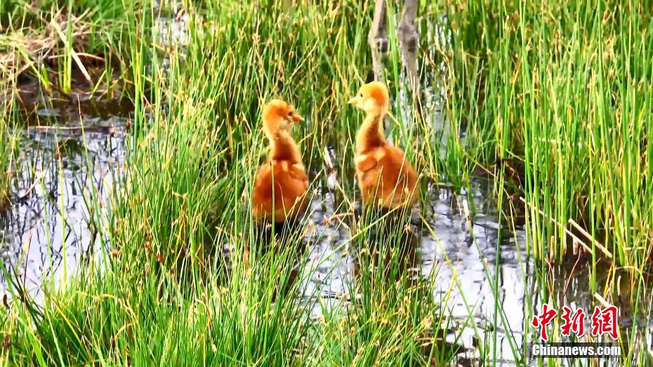 圖為巴隆草原上破殼不久的兩只小黑頸鶴。海西州融媒體中心供圖