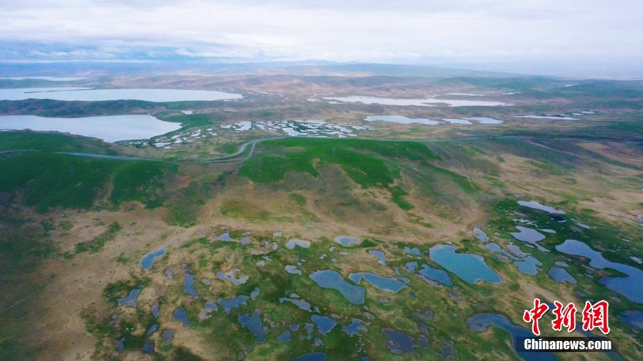 7月2日,航拍青海省果洛藏族自治州瑪多縣星星海。位于黃河源頭瑪多縣的星星海,由大大小小的湖泊、海子、水泊組成,從空中俯瞰,無數湖泊宛如繁星灑進大地,別有一番景致。