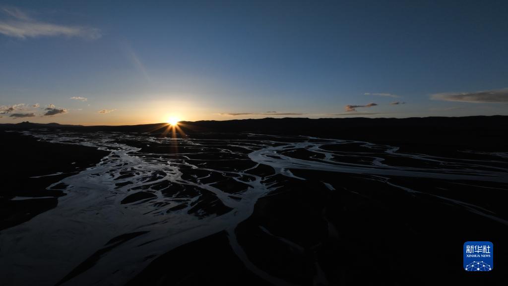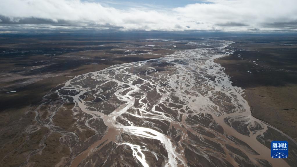 這是2022年7月27日在長江源地區(qū)拍攝的囊極巴隴河道,長江正源沱沱河和南源當(dāng)曲在此匯合(無人機照片)。新華社記者 肖藝九 攝