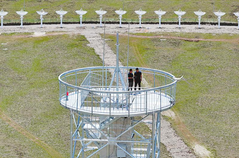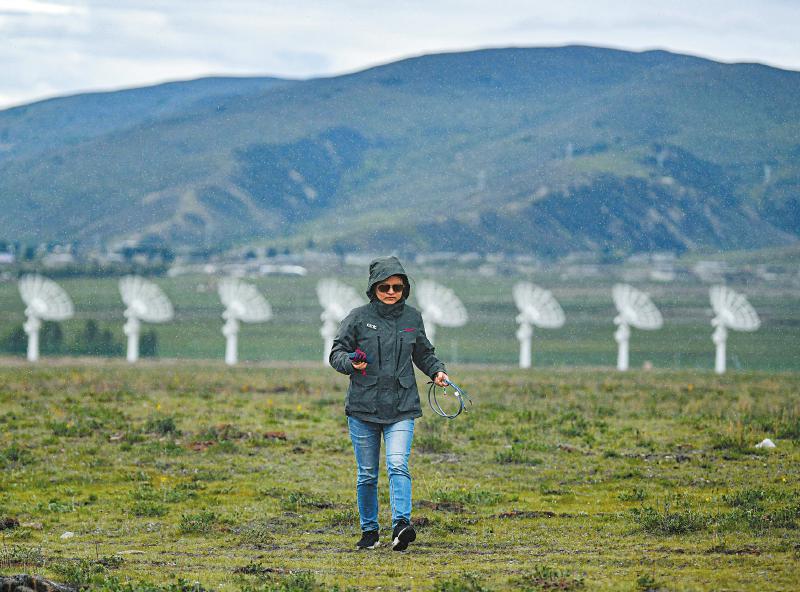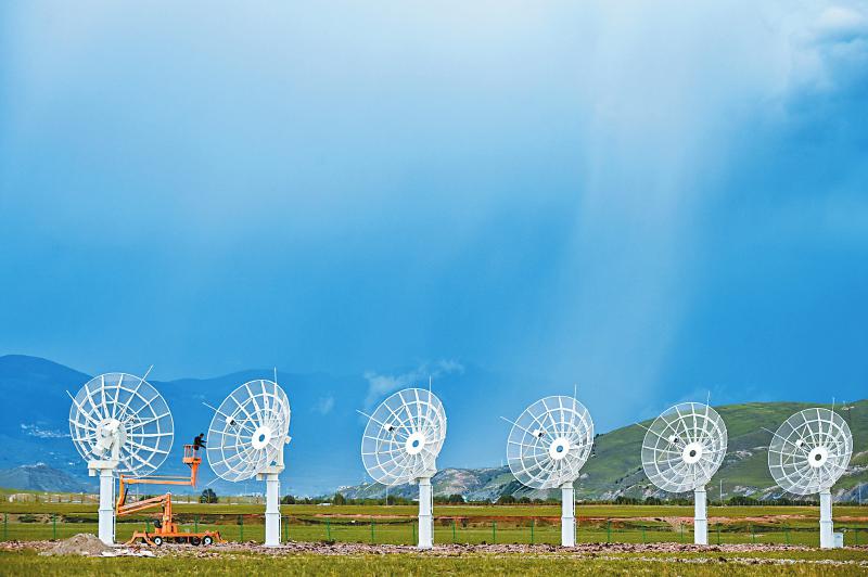 7月8日,四川省甘孜州稻城縣噶通鎮(zhèn)天氣說變就變。在國家重大科技基礎設施——空間環(huán)境地基綜合監(jiān)測網(wǎng)(子午工程二期)圓環(huán)陣太陽射電成像望遠鏡項目建設現(xiàn)場,中國電科第39研究所現(xiàn)場施工負責人葉愛林和同事正在進行天線增益調(diào)試實驗。突然,一道閃電劃過天際,轟隆隆的雷聲過后便是傾盆大雨,葉愛林和同事不得不停下手中正在進行的實驗,臨時找地方躲雨?!斑@雨下不了多久,等雨停了,我們再繼續(xù)。”在項目建設現(xiàn)場已工作了480多天的他,被同事們稱作半個氣象“土專家”。他不僅能“察言觀色”看懂高原上的云彩,還能大差不差地推測出天氣變化。在海拔3800多米的噶通鎮(zhèn),許多科研人員像葉愛林一樣,默默奮戰(zhàn),希望在建的這一國家重大科技基礎設施能早日運行,為中國空間科學事業(yè)的發(fā)展提供關鍵性的探索幫助及技術支持,使我國步入世界空間科學領域的先進行列。