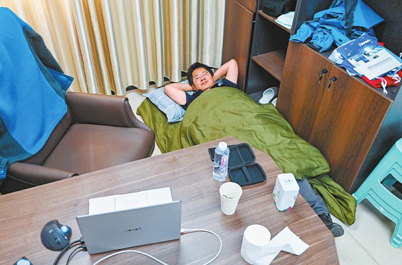 7月8日中午,子午工程二期圓環(huán)陣太陽射電成像望遠鏡項目副主任設計師武林抓緊時間在辦公室午休。