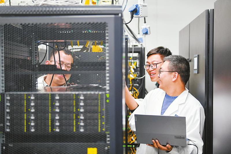7月8日,中國電科第16研究所工程師張錚(右前)與同事一起負責調(diào)試天線。
