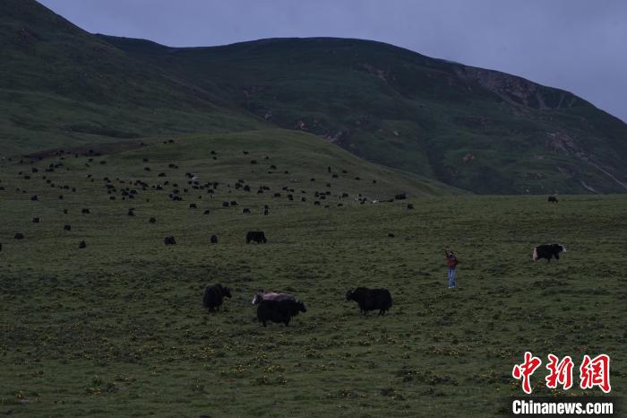 圖為麻切仁措在草原上牧牛。馬銘言攝