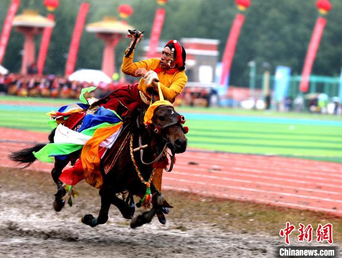 圖為玉樹傳統(tǒng)賽馬會現(xiàn)場的馬術(shù)表演。薛蒂 攝