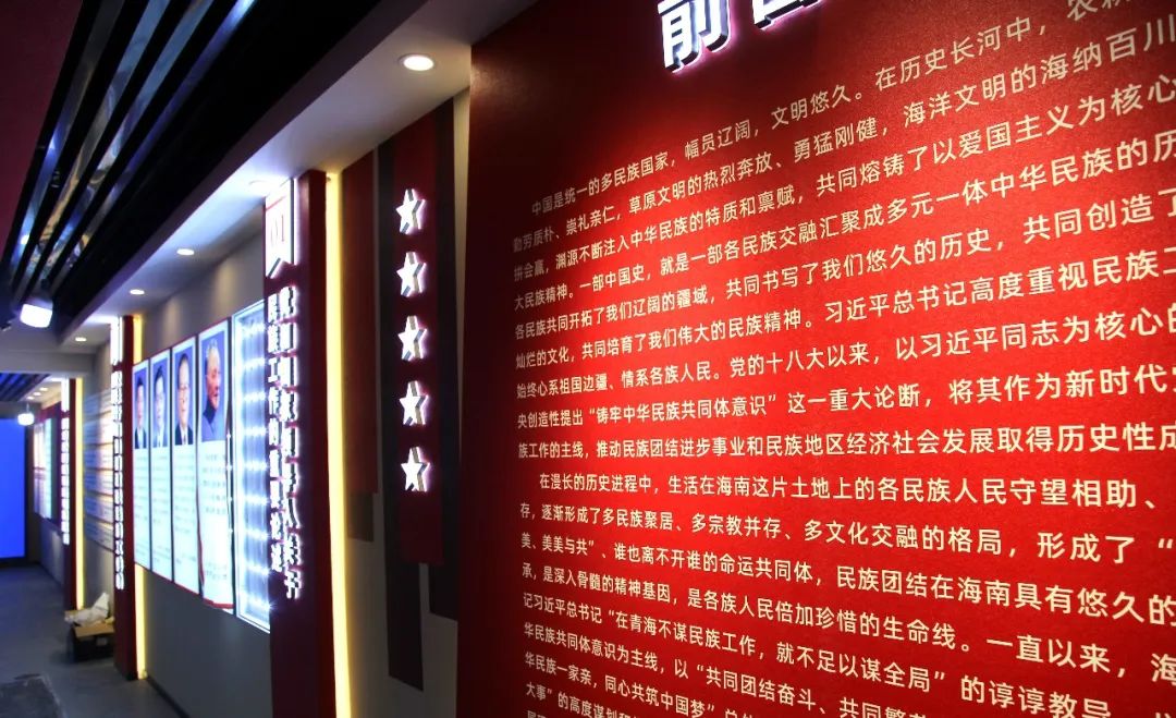 體驗館由“淵源流長、共同書寫海南悠久歷史”“命運與共、共繪中華民族共同體底色”“團(tuán)結(jié)奮斗、共建中華民族共同體”“人杰地靈、共同孕育圣潔海南”“繼往開來,共圓偉大復(fù)興中國夢”五個篇章十八個單元組成,展陳布局完整、內(nèi)容新穎、特色鮮明,是展示海南悠久歷史的“隧道”、改革發(fā)展成果的“窗口”、參觀學(xué)習(xí)交流的“平臺”、各民族交往交流交融的“陣地”。