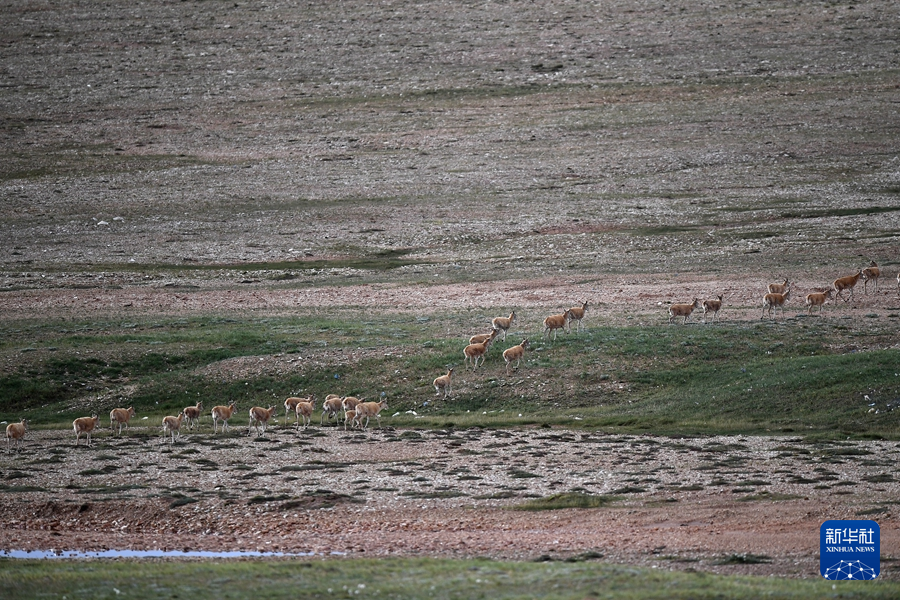 7月27日,一群藏羚羊在可可西里境內(nèi)活動(dòng)。新華社記者 張宏祥 攝