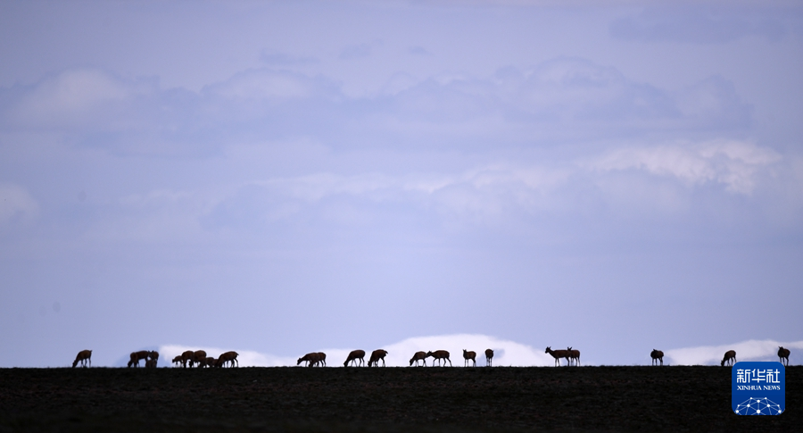 7月28日,一群藏羚羊在可可西里境內(nèi)活動(dòng)。新華社記者 韓方方 攝