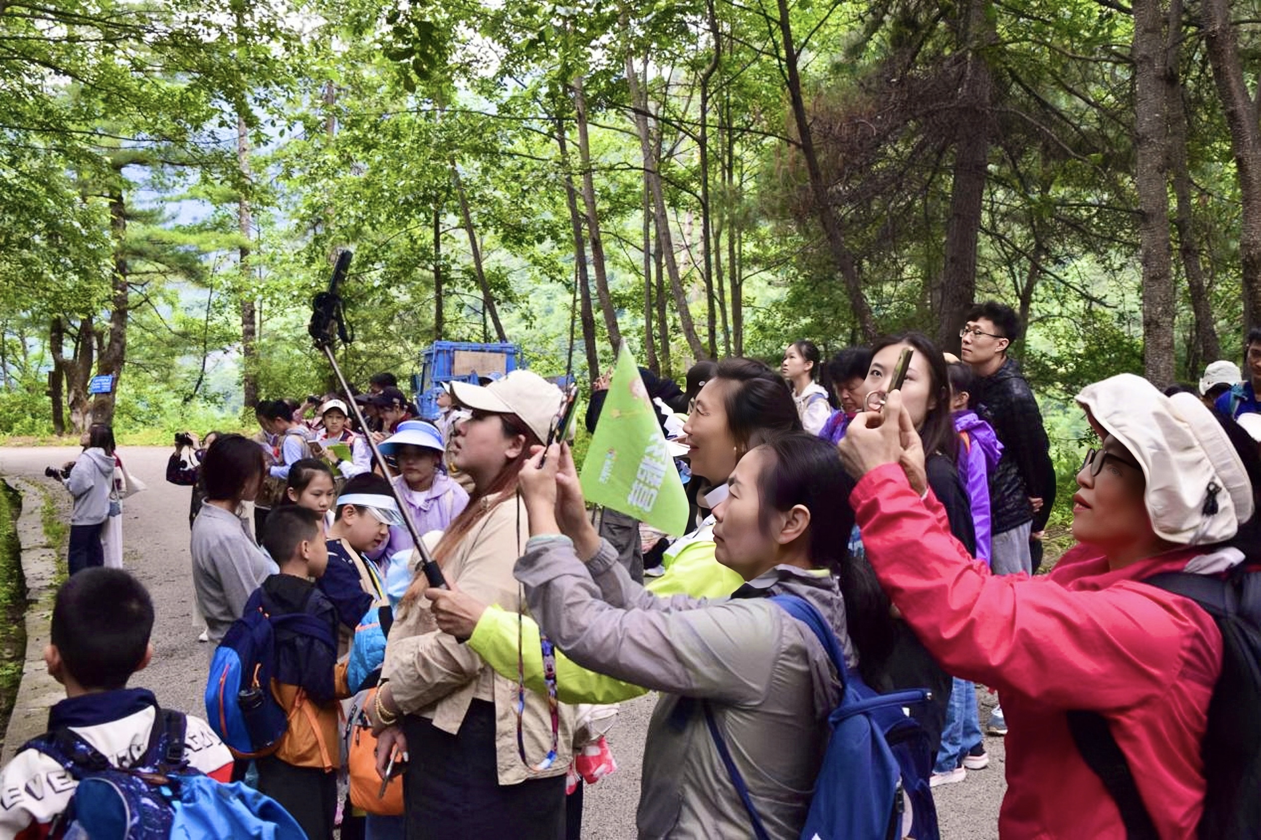 圖為各地游客走進森林,邂逅“猴哥”。