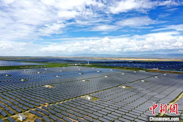 在青海海南藏族自治州共和縣塔拉灘,一場(chǎng)巨大的變革正在發(fā)生:超過(guò)700萬(wàn)塊深藍(lán)色光伏板在綠色草甸上展開(kāi),昔日“風(fēng)吹石頭跑”的蒼涼景象已不復(fù)存在。
