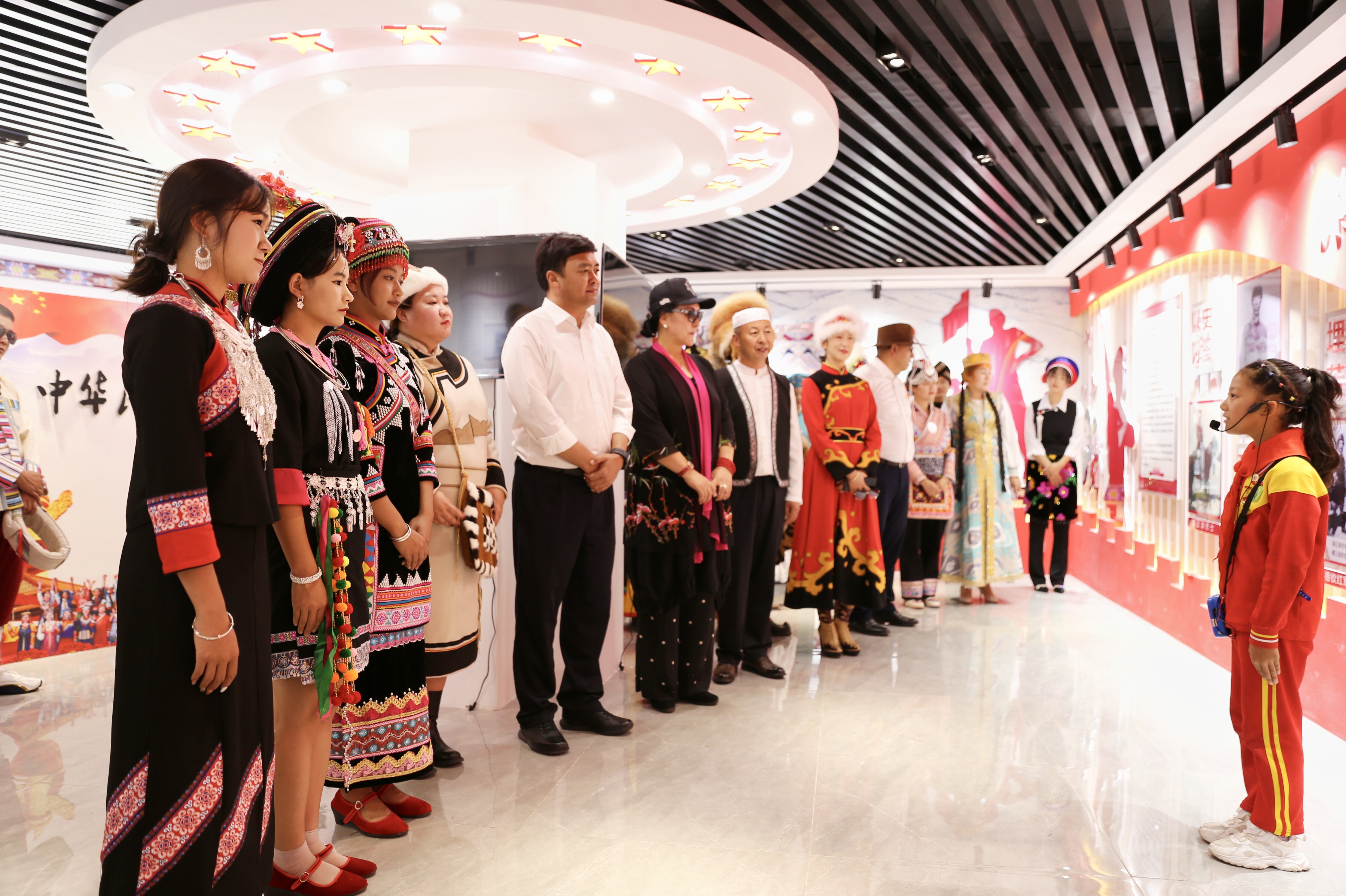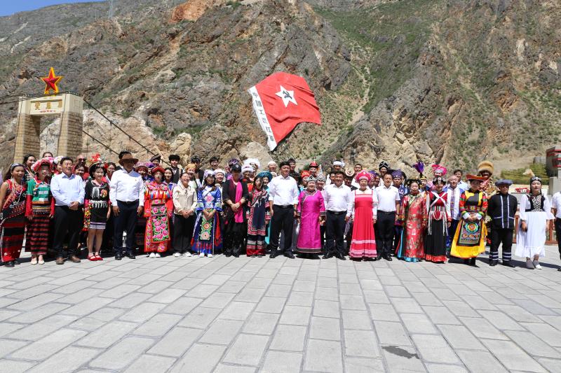 活動中,全體人員合唱《我和我的祖國》,在德欽縣第二小學的少先隊解說員的指引解說下,56位民族嘉賓還參觀了賀龍橋紅軍長征紀念館,在紅軍長征路過賀龍橋的故事中,大家走進了曾經硝煙彌漫的艱苦歲月,更深刻地感受了戰(zhàn)爭年代紅軍與各民族肝膽相照、相依相存的深情厚誼。
