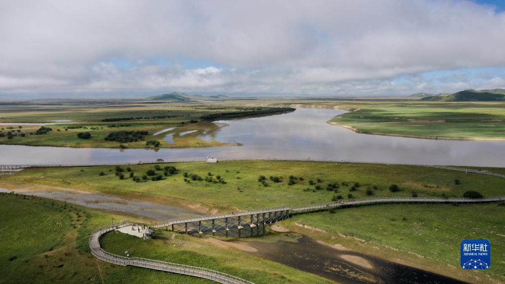 這是8月24日在四川省阿壩藏族羌族自治州若爾蓋縣唐克鎮(zhèn)拍攝的黃河九曲第一灣景色(無人機(jī)照片)。新華社記者 邢廣利 攝