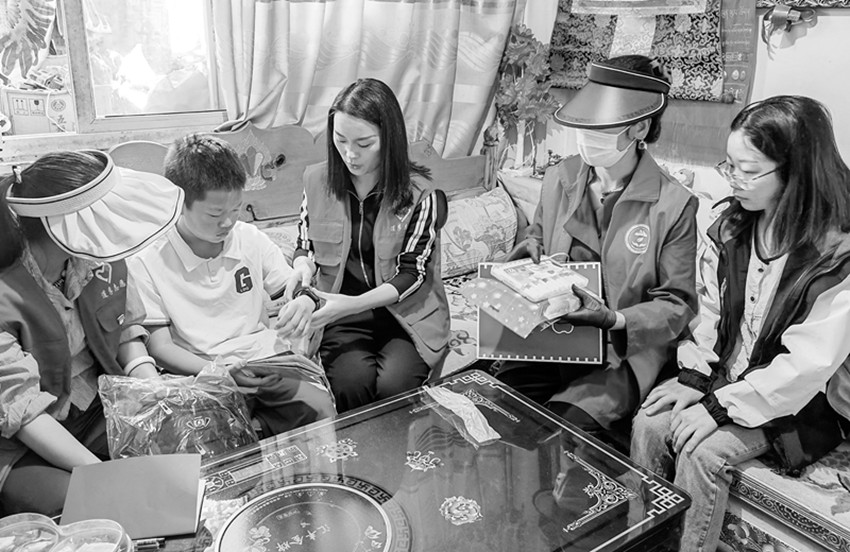 志愿服務(wù)隊(duì)帶游客到農(nóng)戶家中休息。