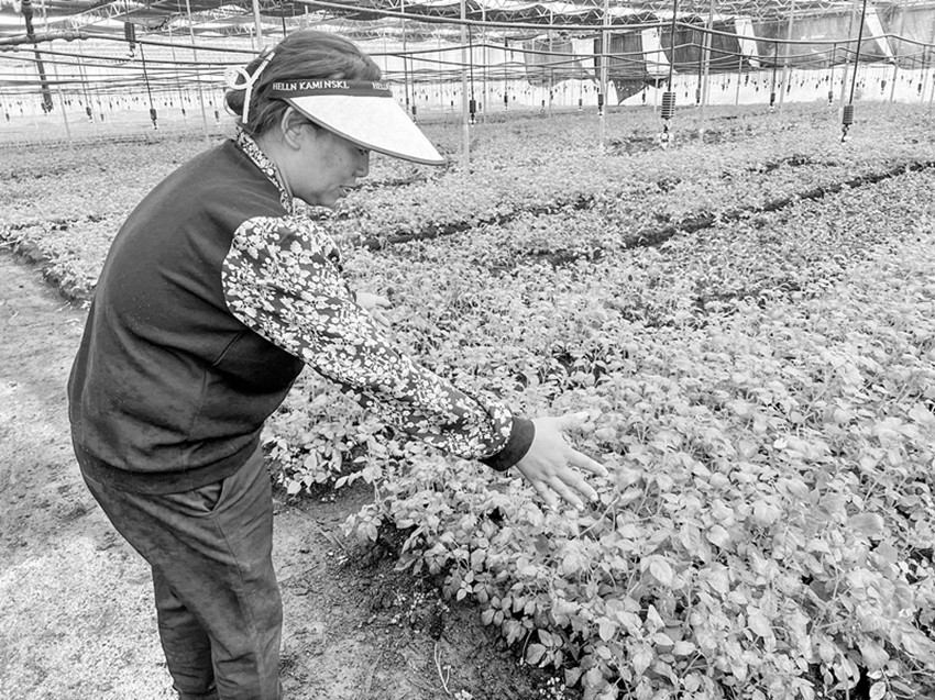 咱威村村民張春琴看著地里的馬鈴薯原原種種苗長(zhǎng)勢(shì)旺盛,臉上寫滿了喜悅?!拔易约杭乙卜N了1畝多土豆,用基地的種子種出來的馬鈴薯個(gè)頭大、產(chǎn)量高,賣得起價(jià)。我現(xiàn)在一邊在基地干活,一邊跟著他們學(xué)技術(shù)?!睆埓呵俑嬖V記者,在家門口就能掙錢,自己很開心!