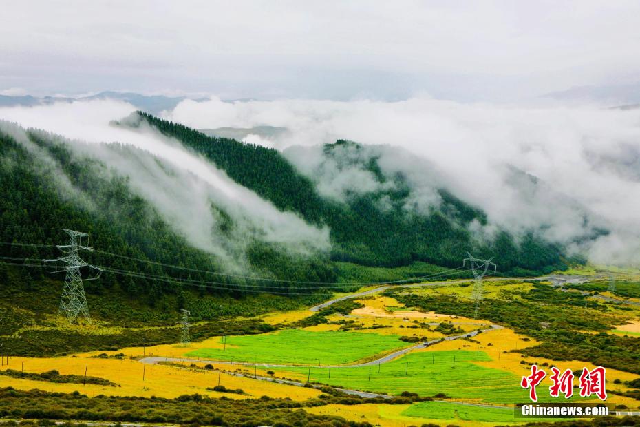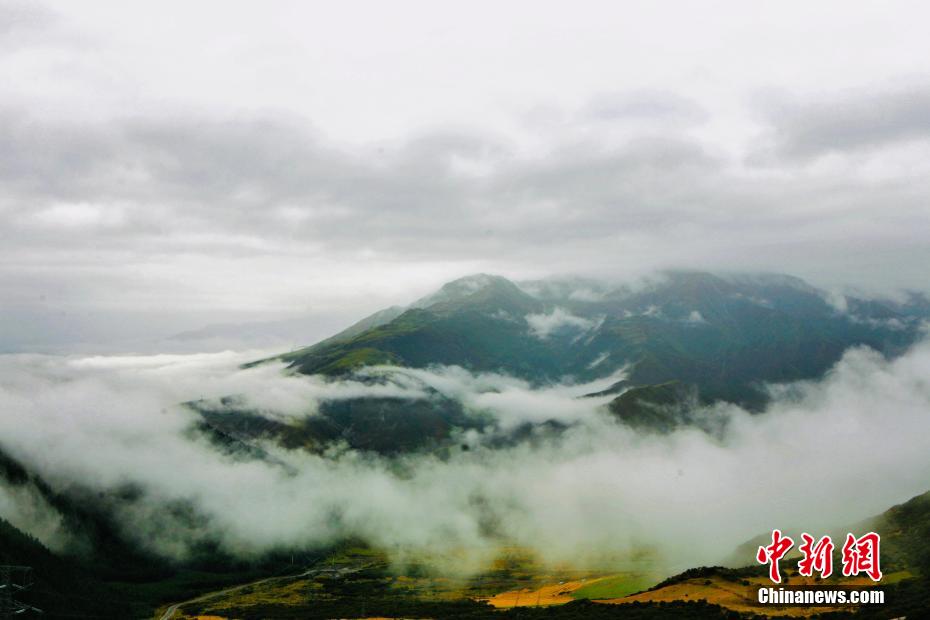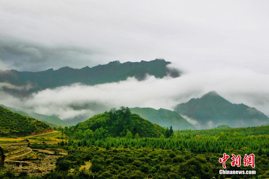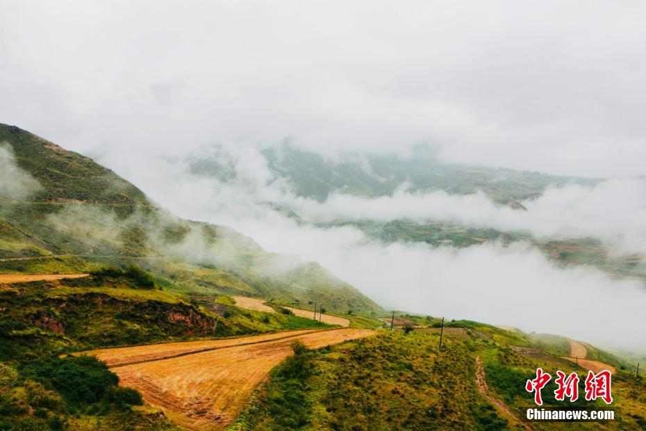 金秋9月,一場秋雨過后,青海省海南藏族自治州貴德縣山間云霧繚繞,白色云海像潔白的哈達(dá)飄落山間,與藍(lán)天、綠地相映成趣,風(fēng)光旖旎。