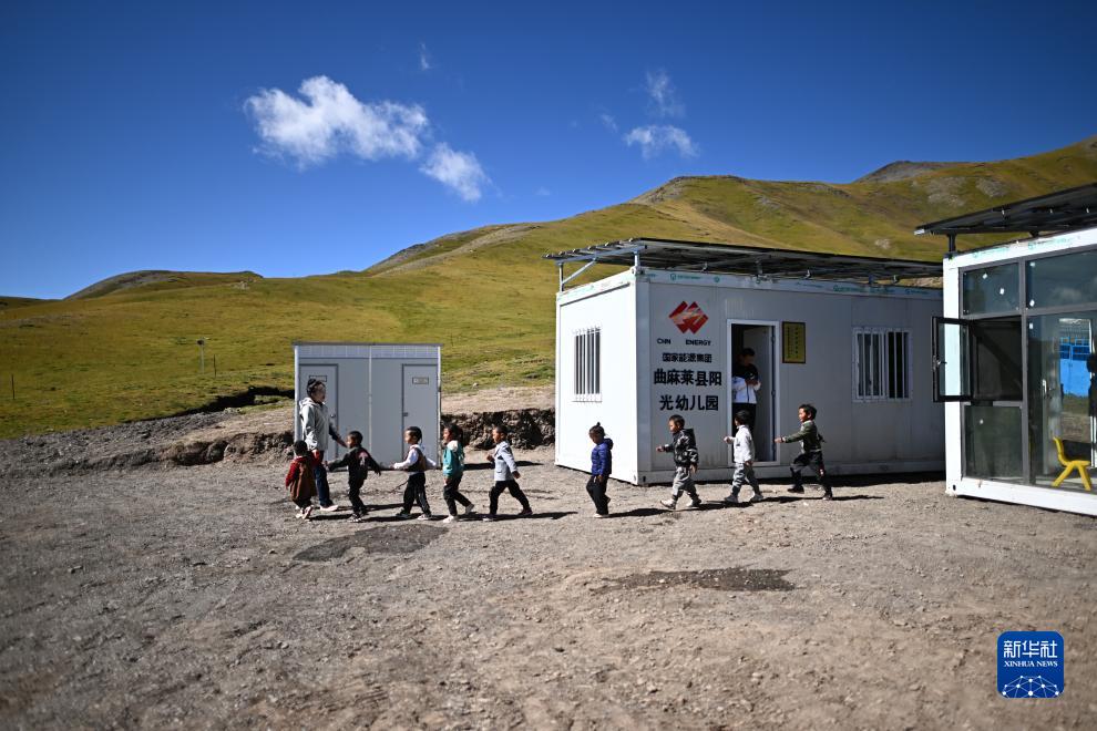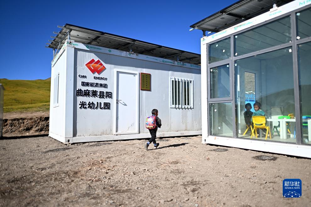 作為曲麻萊縣定點(diǎn)幫扶單位,國(guó)家能源集團(tuán)自2022年起累計(jì)投入1350萬元,在曲麻萊縣建設(shè)15所陽光幼兒園。陽光幼兒園為集裝箱式房屋,配備屋頂離網(wǎng)儲(chǔ)能光伏系統(tǒng),可以滿足供暖、照明等需求。幼兒園招收居住在周邊牧場(chǎng)的兒童,讓孩子們?cè)陔x家不遠(yuǎn)處就能接受學(xué)前教育。