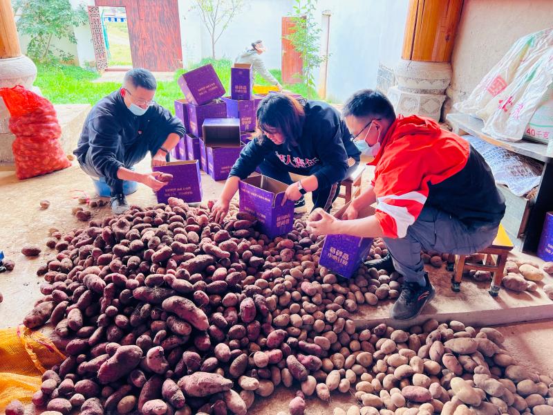 東航駐村隊員主動聯(lián)系公司尋求幫助,通過航班運輸了100公斤土豆在公司食堂免費品嘗,動員公司員工購買,并與香格里拉市云商匯、中國郵政集團有限公司迪慶州分公司聯(lián)系,通過網(wǎng)絡(luò)平臺預(yù)訂、“門對門”運輸保障等方式擴大購買群體,解決配送問題。
