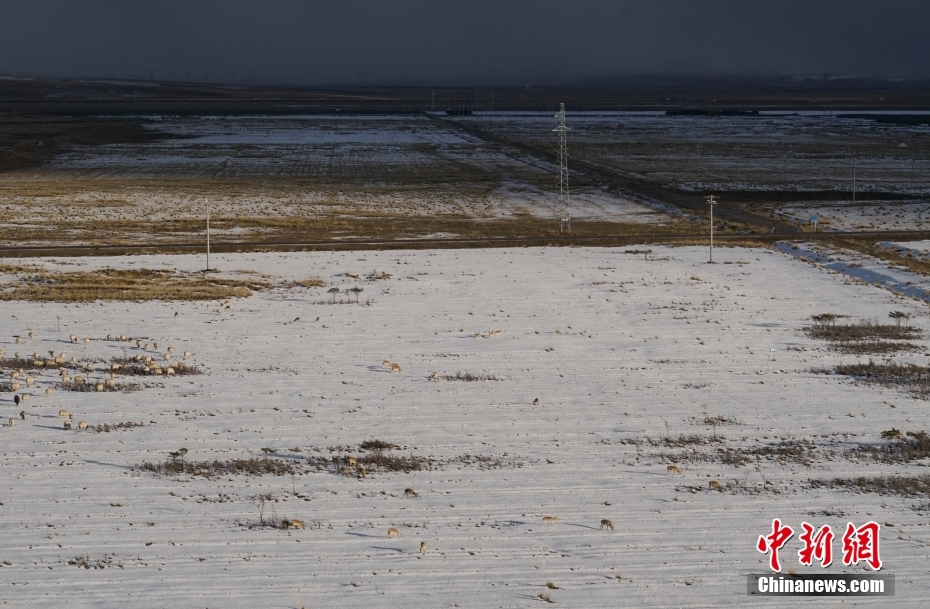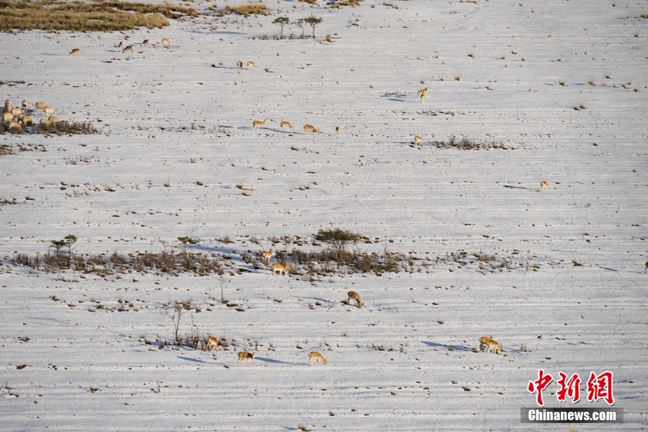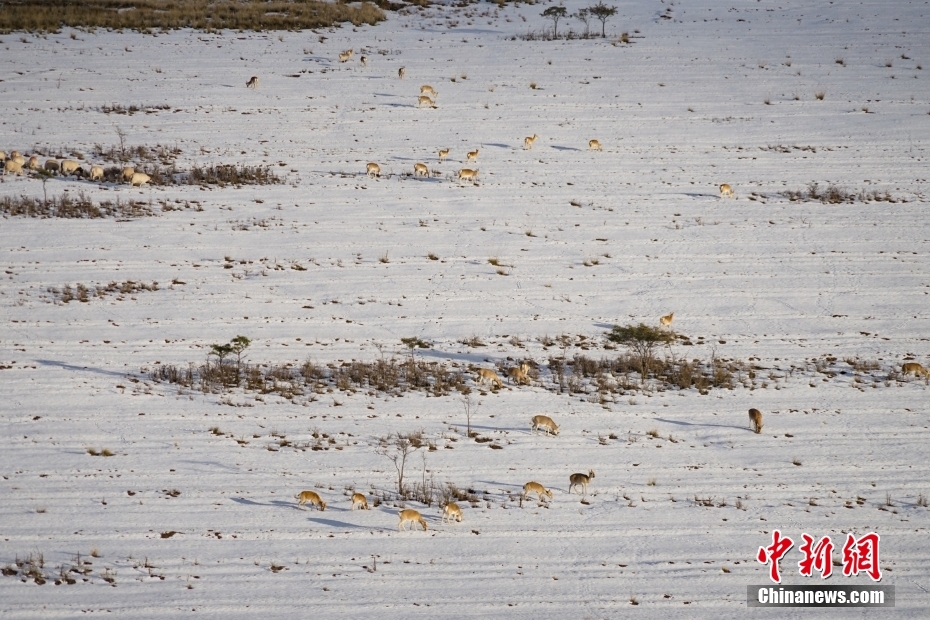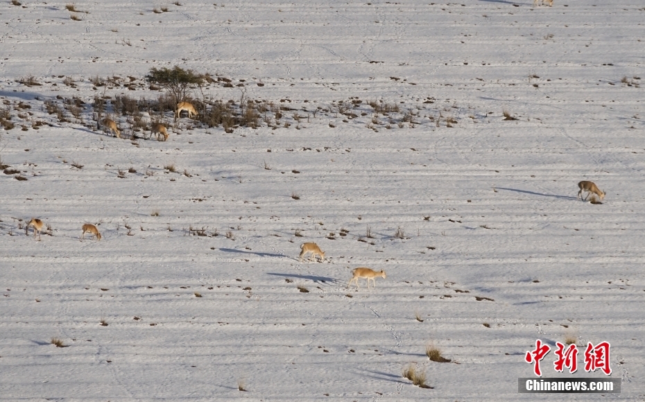 10月12日,成群普氏原羚在青海湖北岸雪中覓食、漫步。當(dāng)日,在青海湖北岸的青海省海北藏族自治州剛察縣哈爾蓋“羚羊小鎮(zhèn)”,成群的普氏原羚在雪中覓食、漫步。普氏原羚是世界瀕危物種、國家一級重點(diǎn)保護(hù)野生動物,現(xiàn)僅分布于青海湖周圍,成為青海湖獨(dú)有的珍稀有蹄類動物和旗艦物種。中新社記者 馬銘言 攝