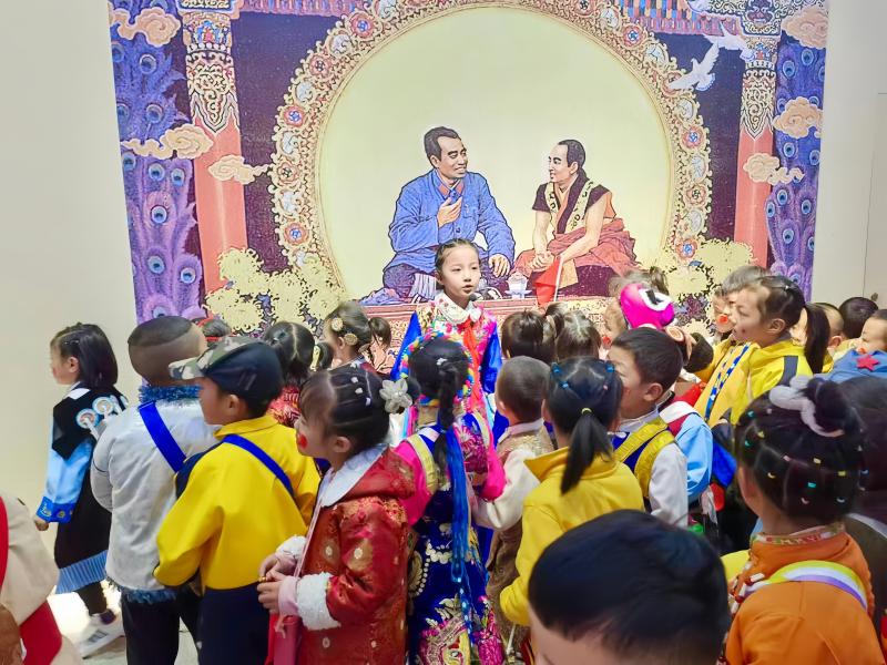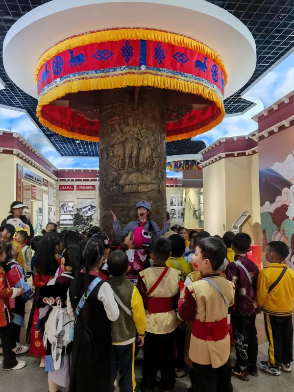 展館內(nèi),“格桑花小小講解員”進(jìn)行著生動(dòng)地講解,通過(guò)一件件文物、一幅幅圖片、一個(gè)個(gè)互動(dòng)景觀訴說(shuō)雪域高原上的紅色歷史,引導(dǎo)小朋友們體悟那段不平凡的崢嶸歲月,在行走的課堂里收獲知識(shí)和成長(zhǎng)。