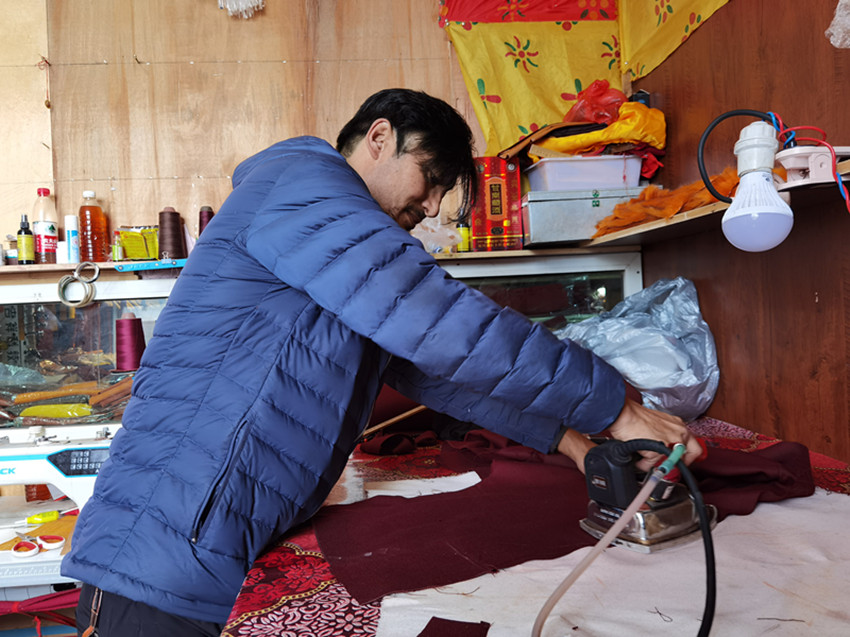 “噠噠噠,噠噠噠……”近日,筆者走進白玉縣阿察鎮(zhèn)昌拖村村集體經(jīng)濟商品房,映入眼簾的是一位正踩著縫紉機踏板穿針引線,縫補衣服的租客。他叫白瑪,是德格縣人,因妻子是該村村民,結(jié)婚后便在此居住,2020年村里修建了村集體經(jīng)濟商品房后,夫妻倆經(jīng)過商量后決定租用進行創(chuàng)業(yè)。