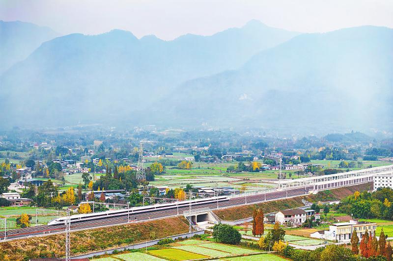 11月23日,試跑動(dòng)車組行駛在綿陽市安州區(qū)境內(nèi)。 四川日?qǐng)?bào)全媒體記者 何海洋 攝