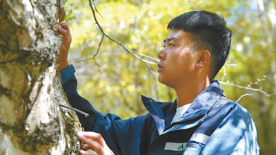 做好管護(hù)員并不容易。幾年來的風(fēng)吹雨打讓他練就了一雙“鐵腳板”,以及皸裂的雙手、黝黑的面龐?!懊總€月巡山22天,每次行程十幾公里,除了撿拾垃圾、協(xié)助科研,還得做好林業(yè)病蟲害監(jiān)測、野生動物疫源疫病防治等工作?!睆埳懈嬖V記者。有一次,為了安裝監(jiān)測野生動物的紅外相機(jī),他爬上海拔4070米的高山,因缺氧眼前一黑,至今回想起來都后怕。