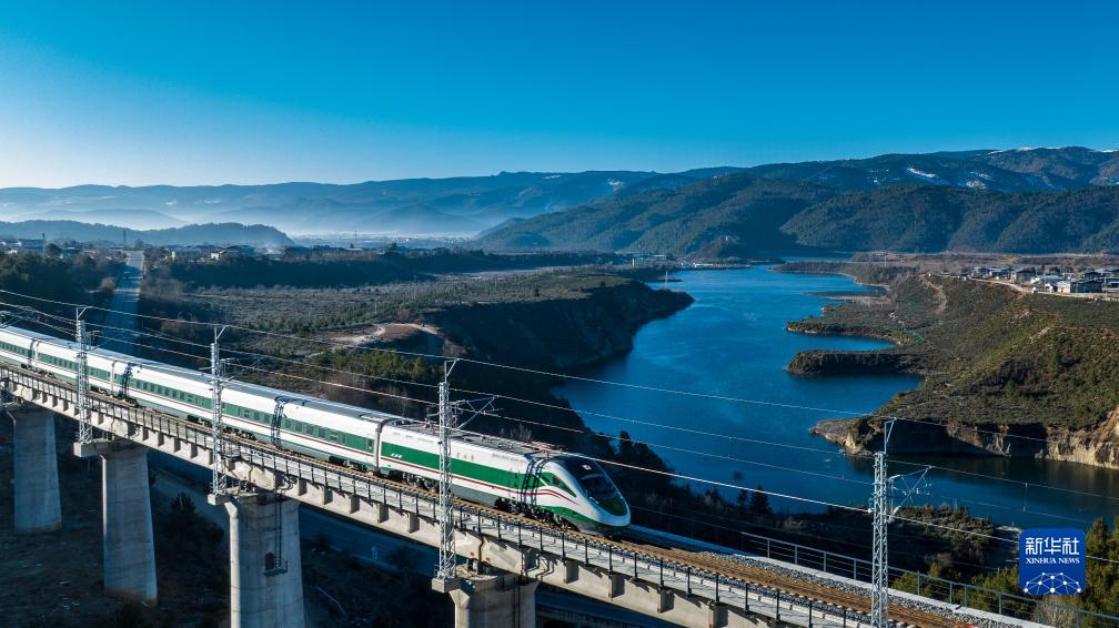 11月26日,列車行駛在麗香鐵路線上。新華社記者 胡超 攝