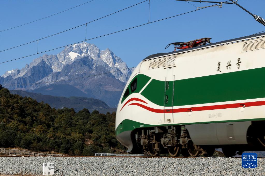 11月26日,列車從玉龍雪山腳下駛過。新華社記者 邢廣利 攝